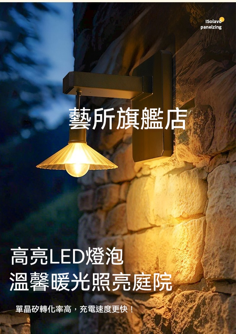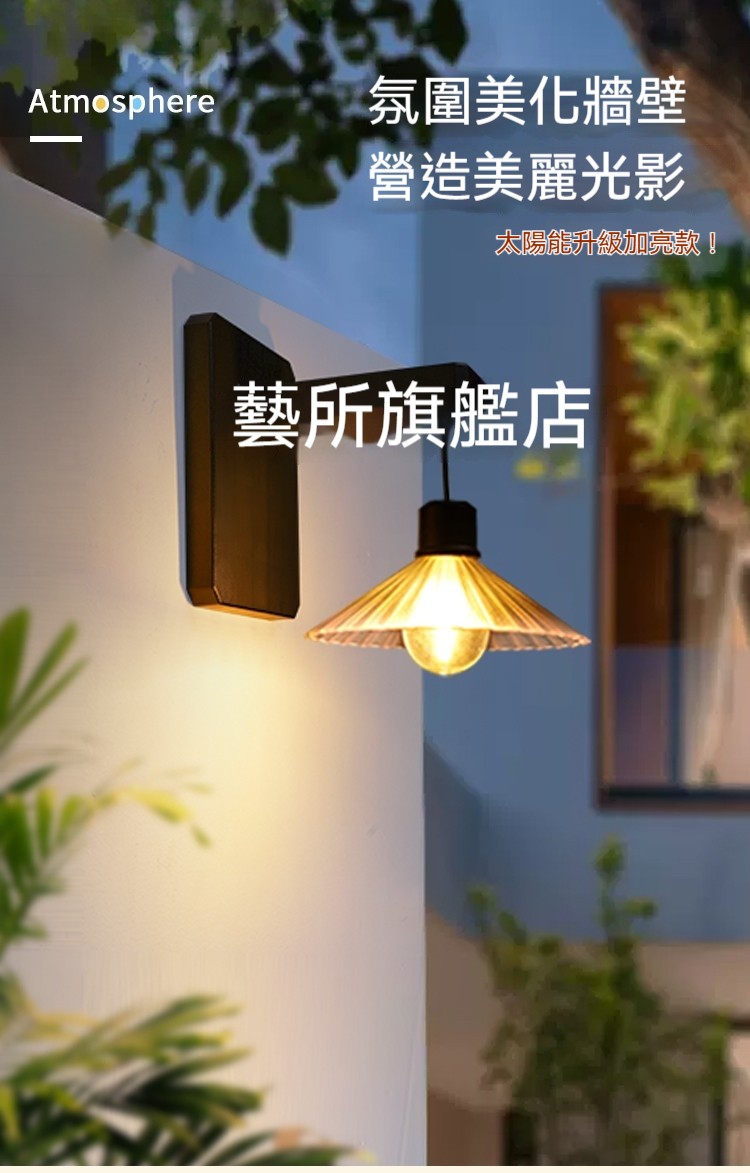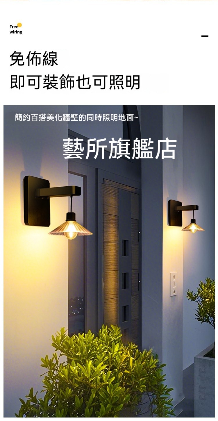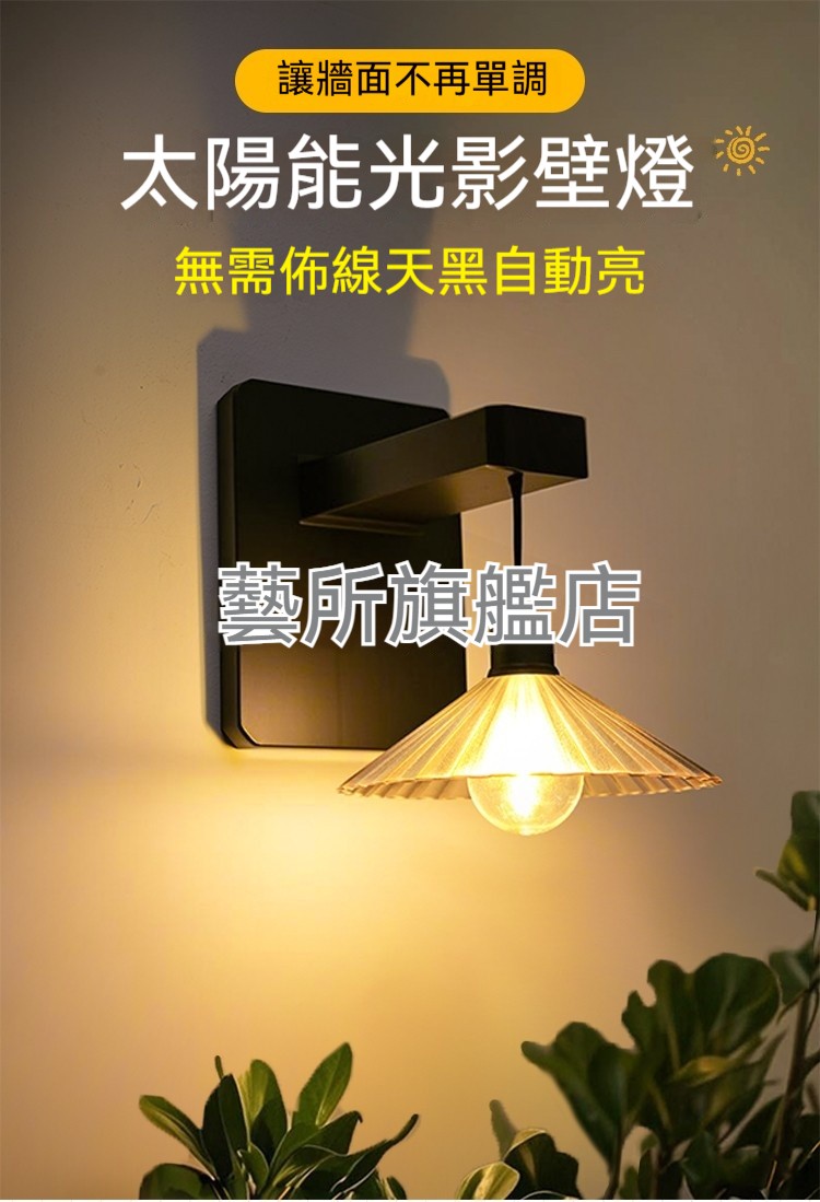 【免佈線太陽能光影壁燈】天黑自動亮|防水耐用|高亮LED暖光照亮庭院✨ (台灣現貨)